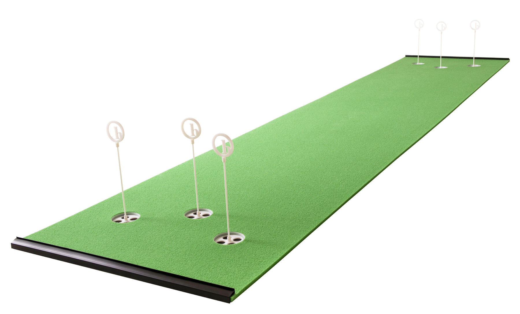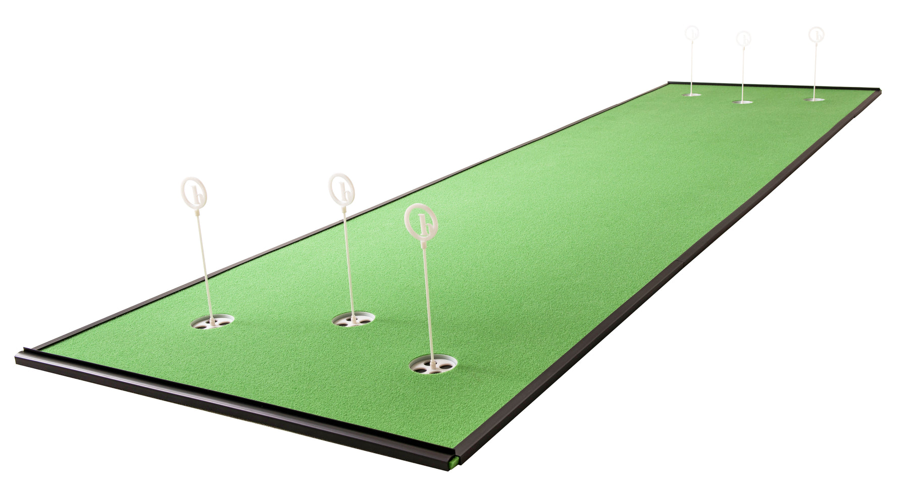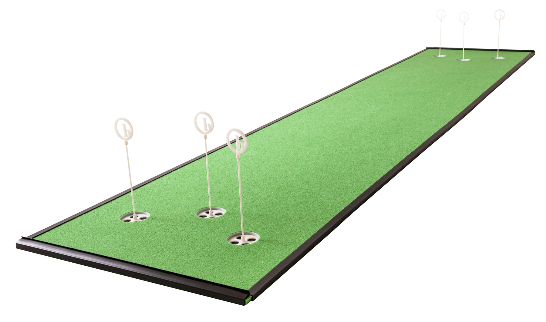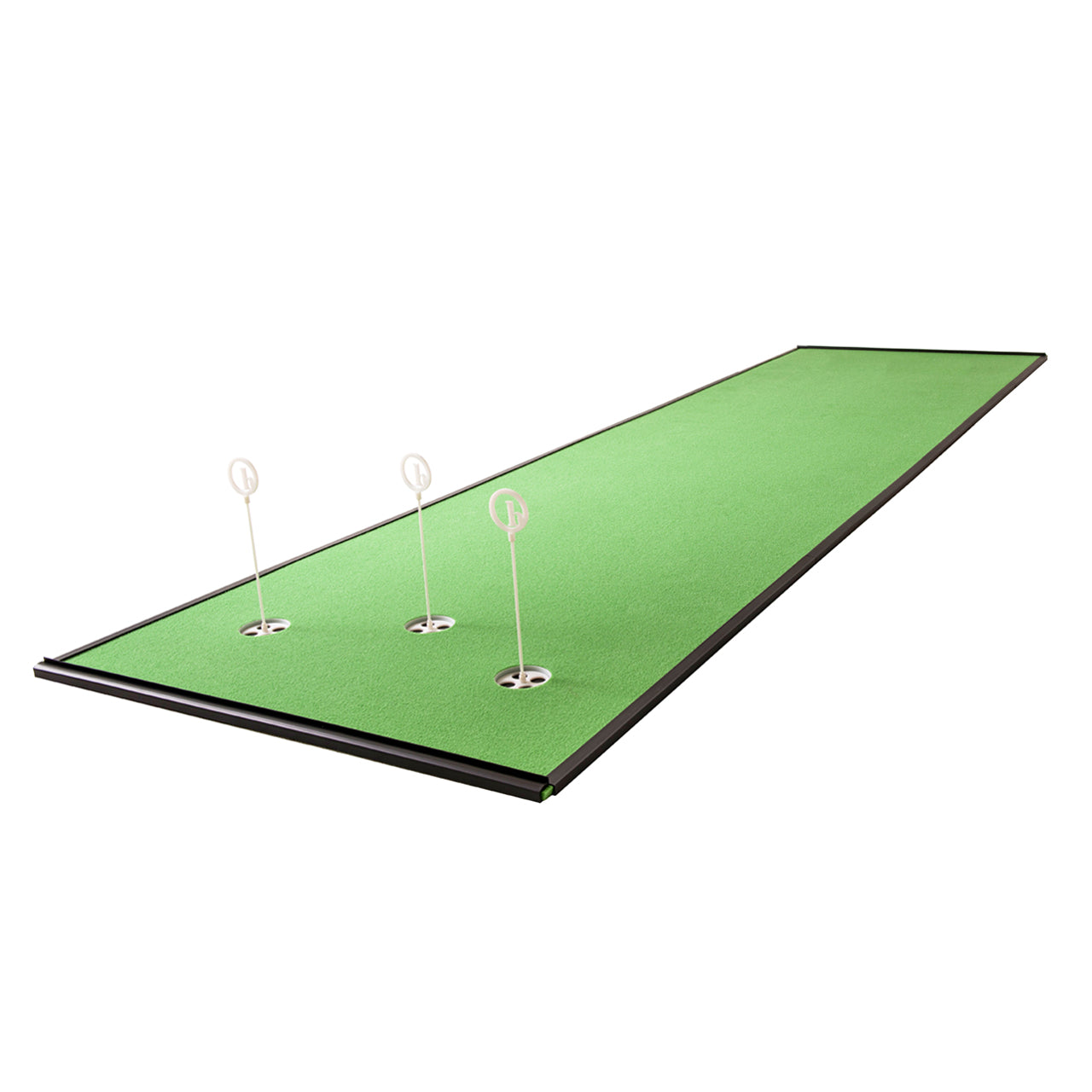 Our greens are engineered with a grain. Angled nubs of artificial grass allow you to practice putting both into the grain and down grain on the same putting surface.
